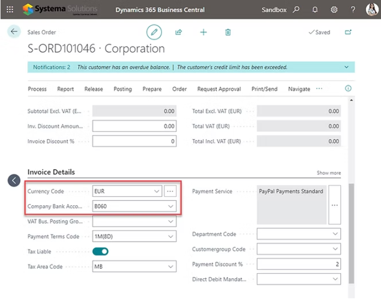 Additionally, partners can extend bank account selection and defaulting logic on sales documents to fit the needs of specific industries and customers.