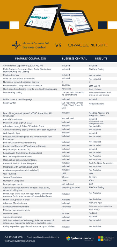 After my last blog post, I have received lots of requests for my version of a side-by-side comparison chart for Microsoft Dynamics 365 Business Central vs. Oracle NetSuite.
