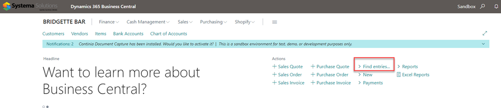 One of the top features we love about Dynamics 365 Business Central 2022 Wave 1 release is the Find Entries feature. It has been available on most pages that display posted document or document entries, but now it’s also available on all Role Centers.