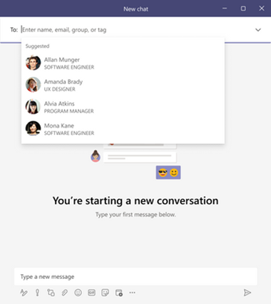 Save time looking for the right stakeholders. Using AI, Teams chat will assist you in initiating new conversations by recommending colleagues based on your previous collaborations. This feature will be generally available by the end of the year.